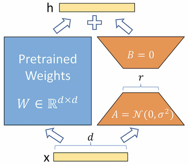LoRA (Low-Rank Adaptation) — метод PEFT: вместо обновления всей матрицы весов