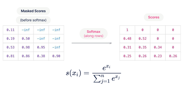 - После $softmax$ веса «в будущее» становятся нулевыми $\rightarrow$ внимание идёт только влево
